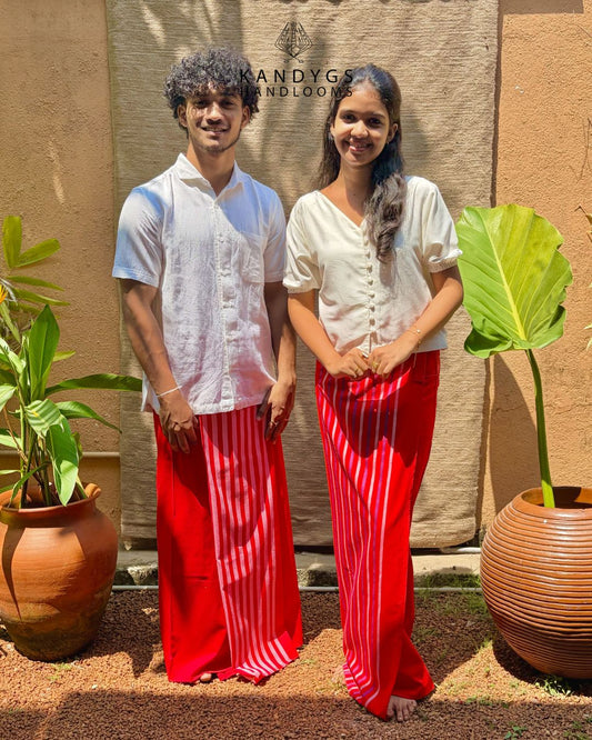 Red Sarong with White Stripes