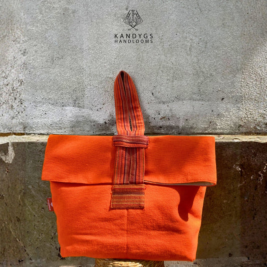 Dumbara Cushion Cover - Orange & Beige With Black (16 x 16)