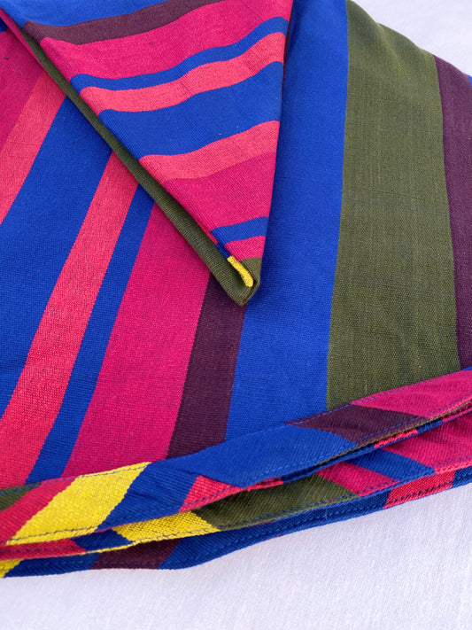 Round table cloth - Blue and red stripes ( 4 seater- 60Q )