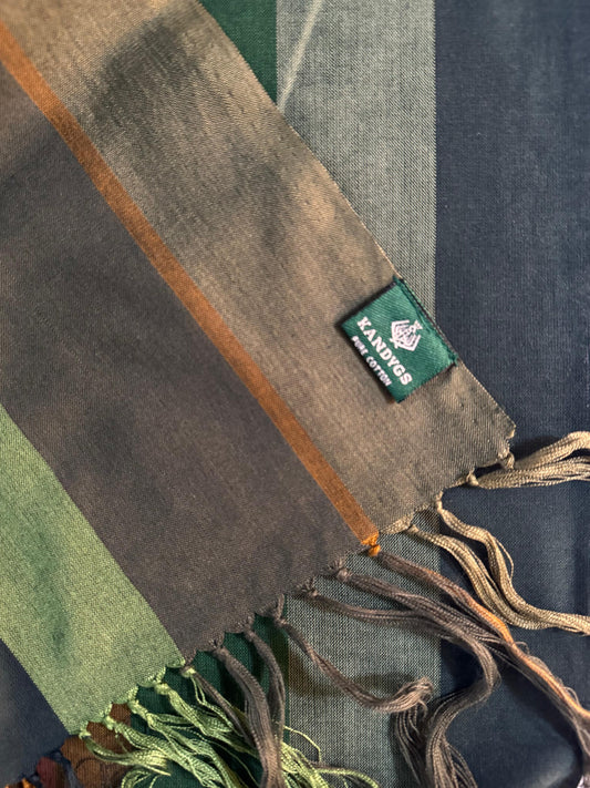 Sold outSaree - Green Yellow White Stripes