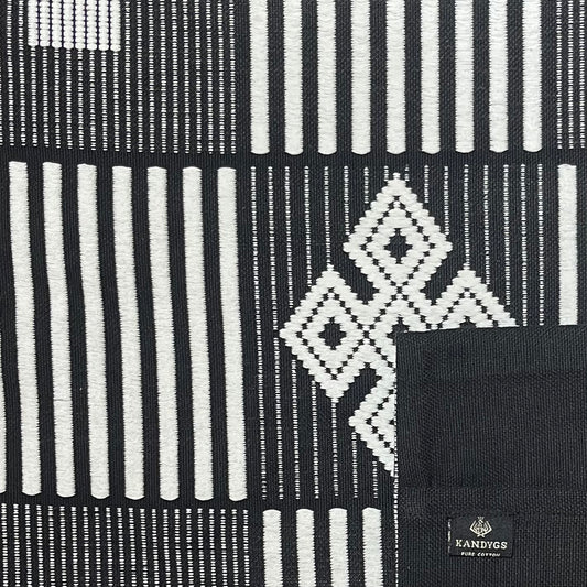 Dumbara Cushion Cover - Black & White Stripes with Diamond (16 x 16)