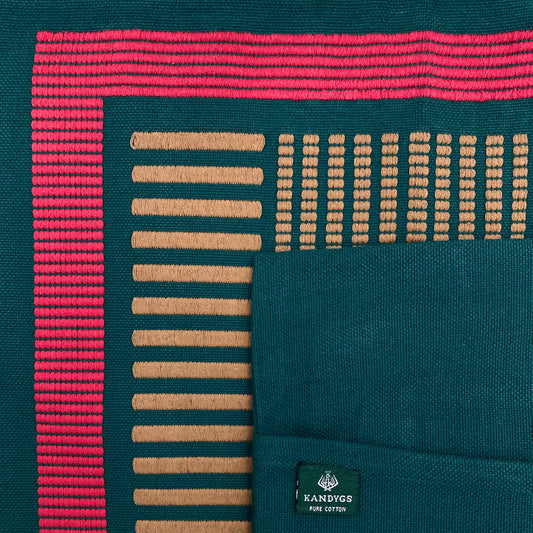 Dumbara Cushion Cover - Dark Green with Brown & Red (16" X 16")