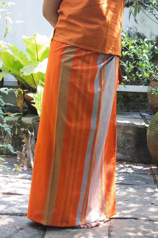 Lungi - orange with gray stripes