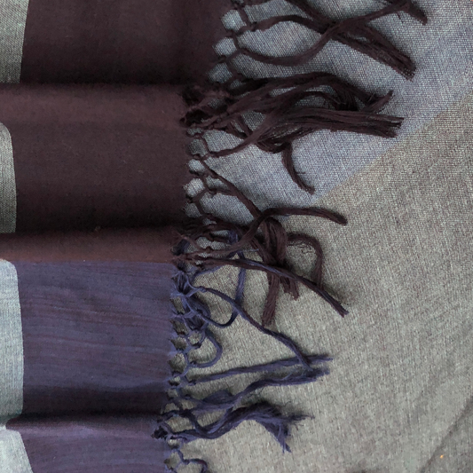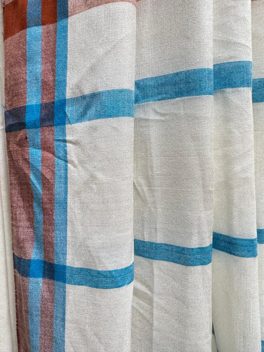Saree - White Saree with Blue & Maroon Stripes
