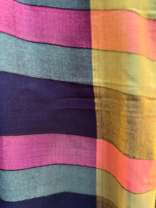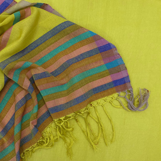 Saree - Yellow with Pastel stripes