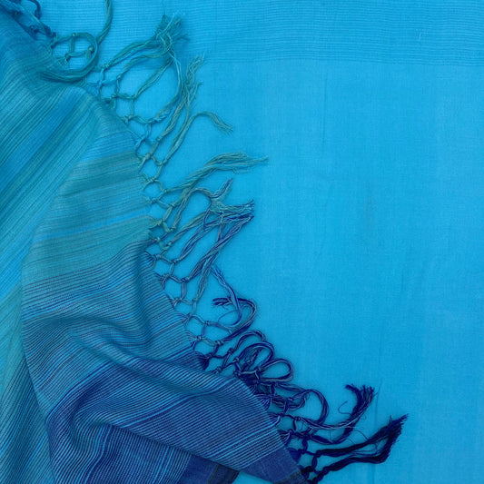 Saree - Light Turquoise with White Stripes