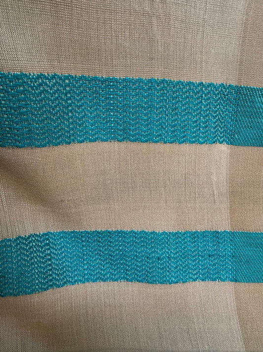 Saree - Beige Saree with Turquoise Blue