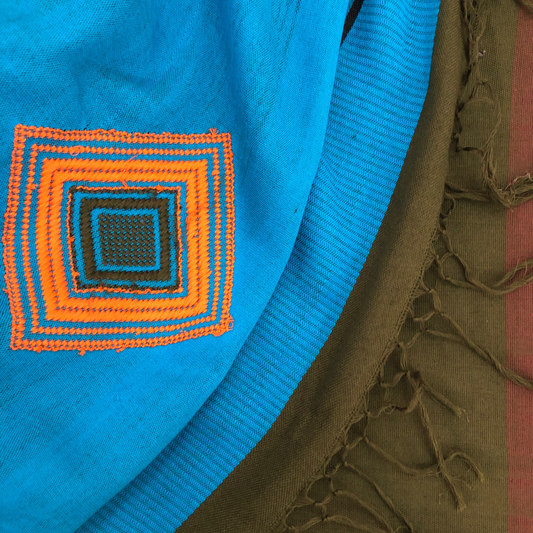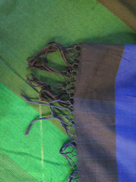 Dumbara Design Saree - Olive Green, Blue & Orange