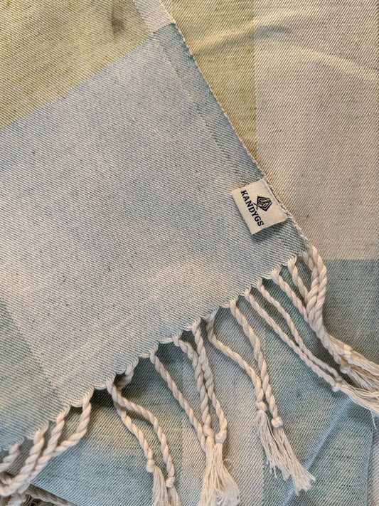 Bamboo & Cotton Throw - Beige & Olive stripes